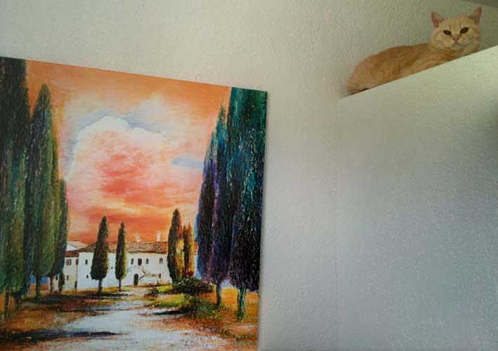 | Das neue Badezimmer ist ja wie für mich gemacht, denn wenn ich auf dem Mäuerchen der Duche sitze, dann habe ich den vollen Durch- und Überblick, wie es sich für eine Chefin auch gehört! |