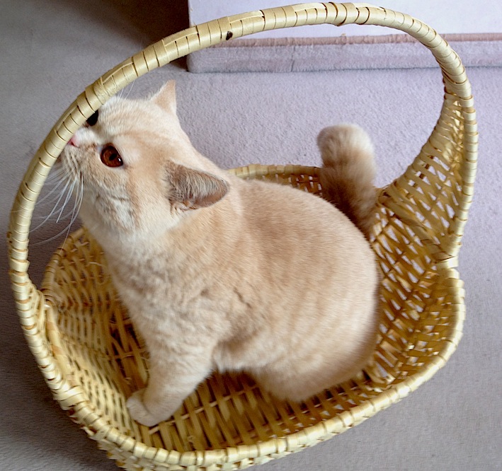 | Frisches Obst ist gut und auch außerordentlich gesund, vor allem wenn es in so einem genialen Katzen-Korb angeliefert wird;-) |