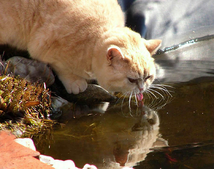 Endlich kommt wieder die warme Jahreszeit, denn aus dem Gartenteich schmeckt das Wasser deutlich besser als aus dem doofen Napf! |